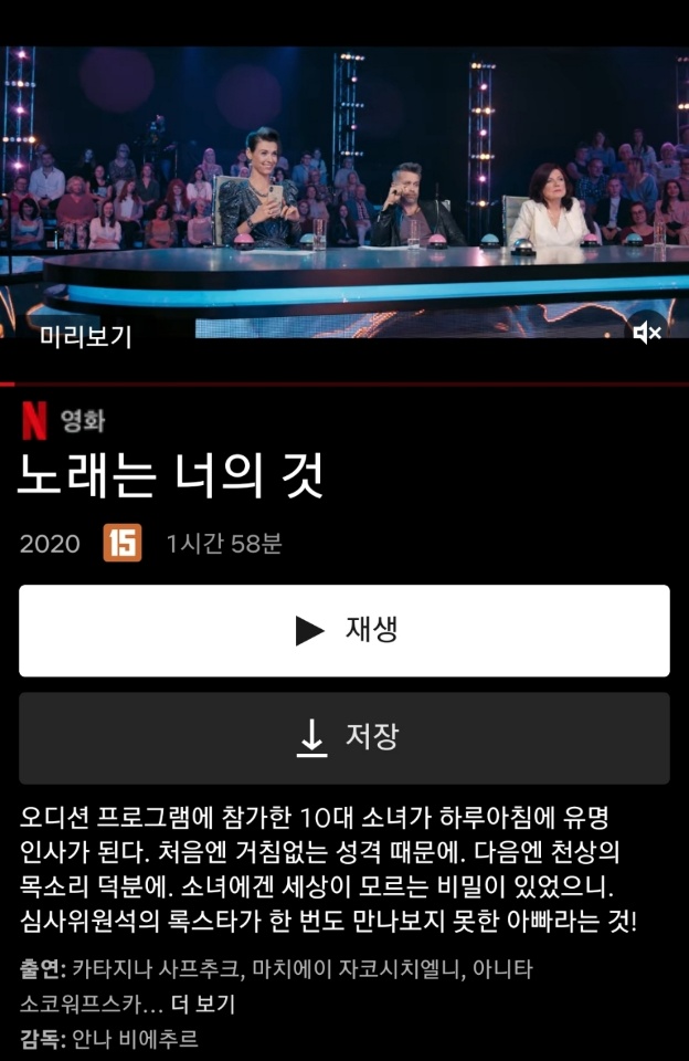 노래는 너의 것 리뷰를 쓰고자 한다. 2020년에 개봉한 폴란드 영화이다, 폴란드는 영어권이 아니라 폴란드어를 사용해서 생소한 언어로 들린다, 주인공인 마르타가 록스타의 딸인 걸로 나오는 출생의 비밀을 처음부터 바로 밝힌다, 가족을 버리고 간 아빠에게 복수를 하고 싶어서 오디션에 출연하게 된다.