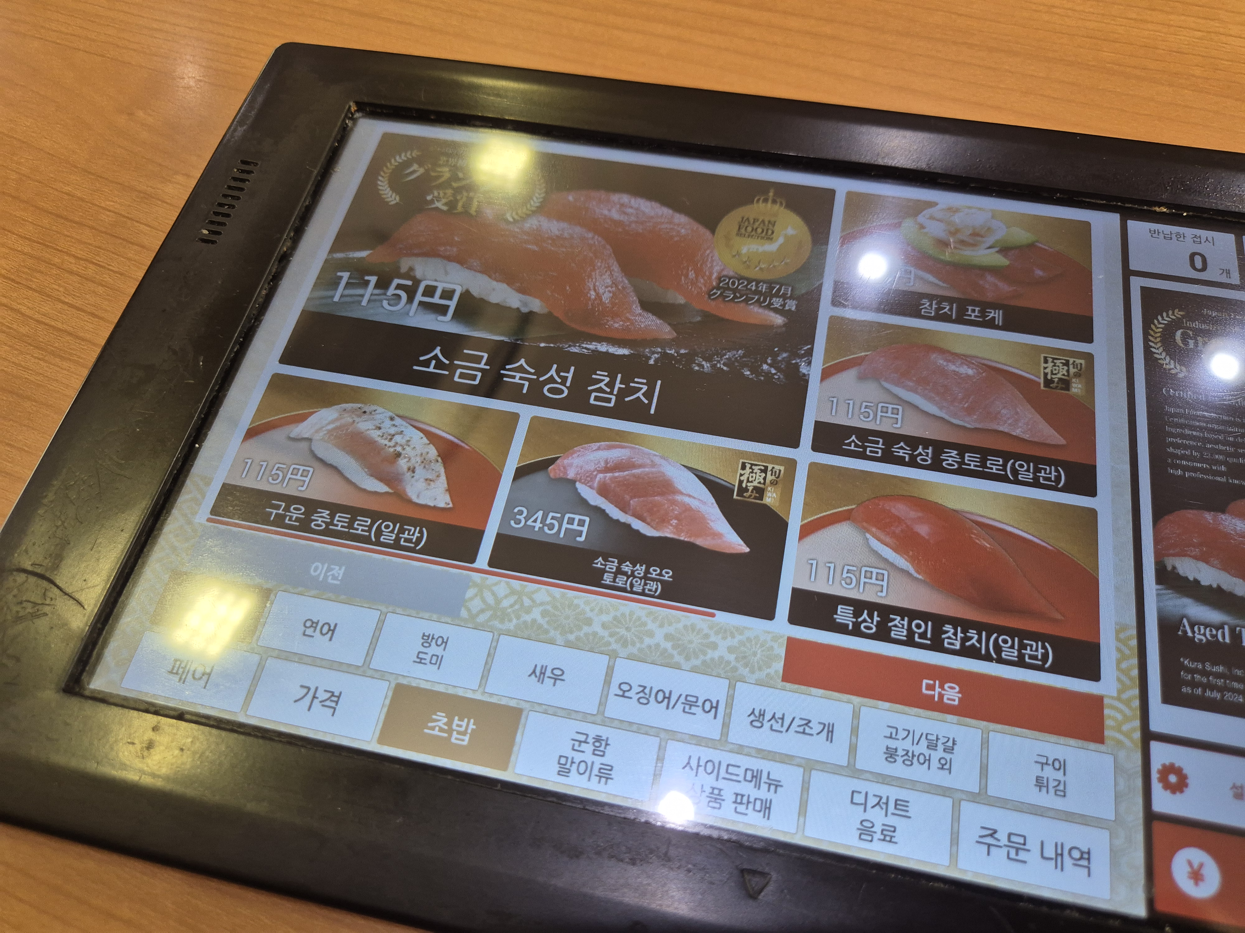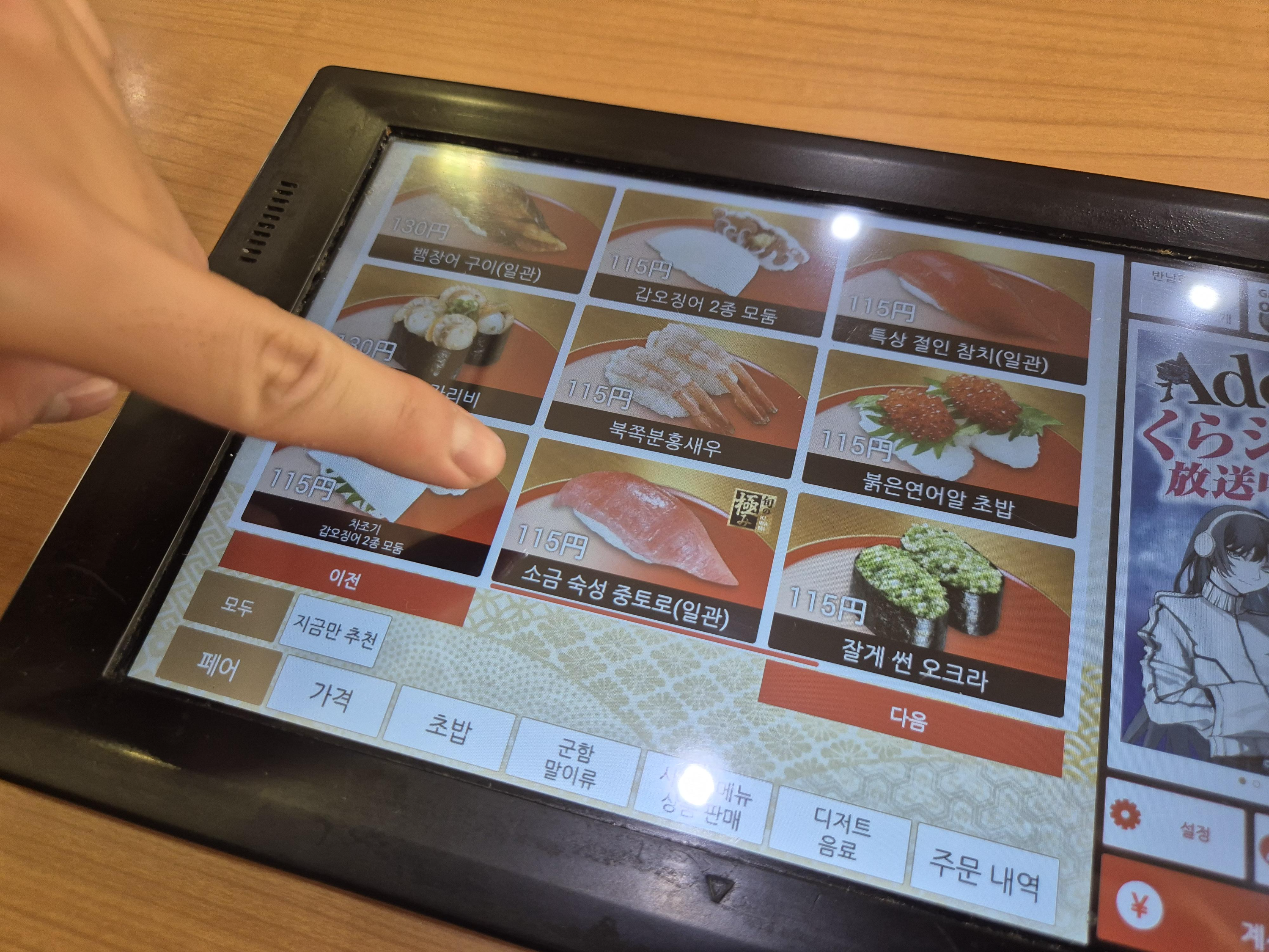 회전초밥으로 돌아가는 메뉴를 집어 먹어도 되지만